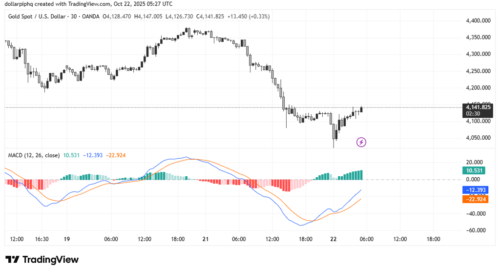 Example: If XAUUSD MACD histogram shifts from red to green, it can be an early sign that buying pressure is increasing.