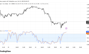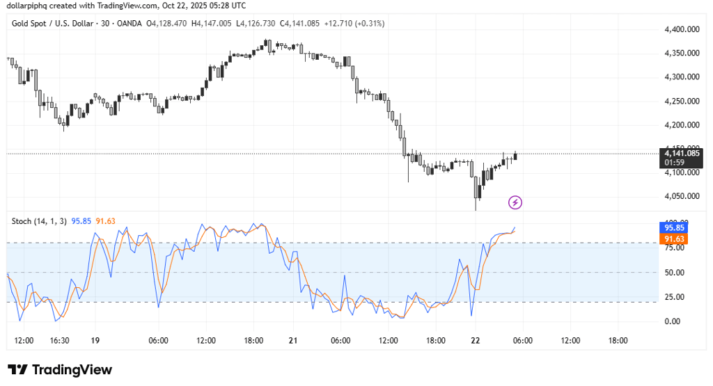 Example: When XAUUSD Stochastic crosses down from 80, traders may anticipate a short-term correction.