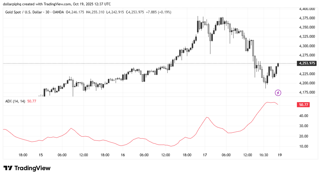 A value above 25 indicates a strong trend (up or down).