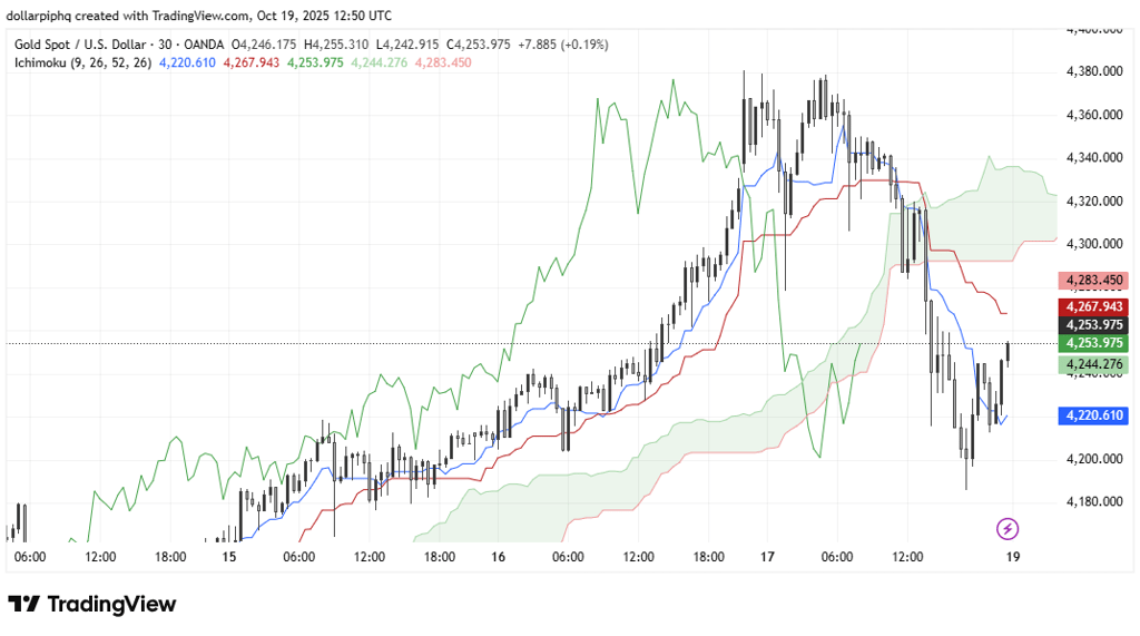 The shaded area (Kumo) acts as a visual cloud to help identify potential reversals and strong trends at a glance.